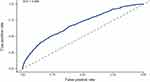 |  | Figure 2 ROC curve for the prediction model of COPD exacerbations from the BART model. Abbreviations: AUC, area under the ROC curve; BART, Bayesian Additive Regression Trees; COPD, chronic obstructive pulmonary disease; ROC, receiver operating characteristic. |